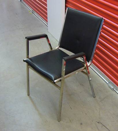 . 21 black metal framed stacking office chairs with padded seats with