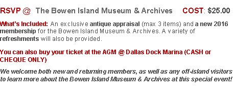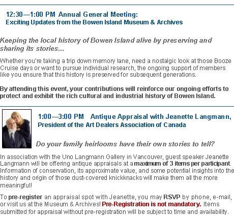 [BCMA] FW: Make it a Weekend! Bowen Museum AGM & Antique Appraisal