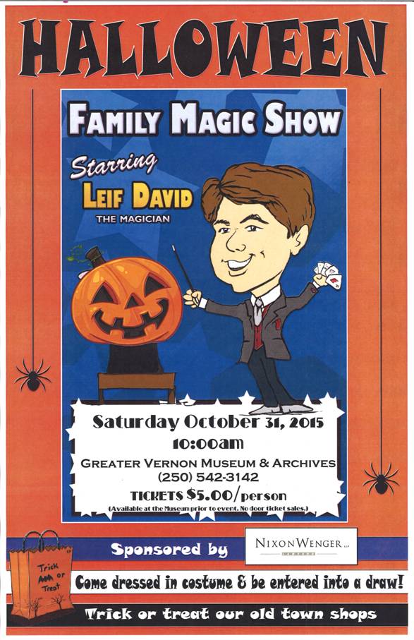 10:00am, at the Greater Vernon Museum & Archives. The spooktacular Magic