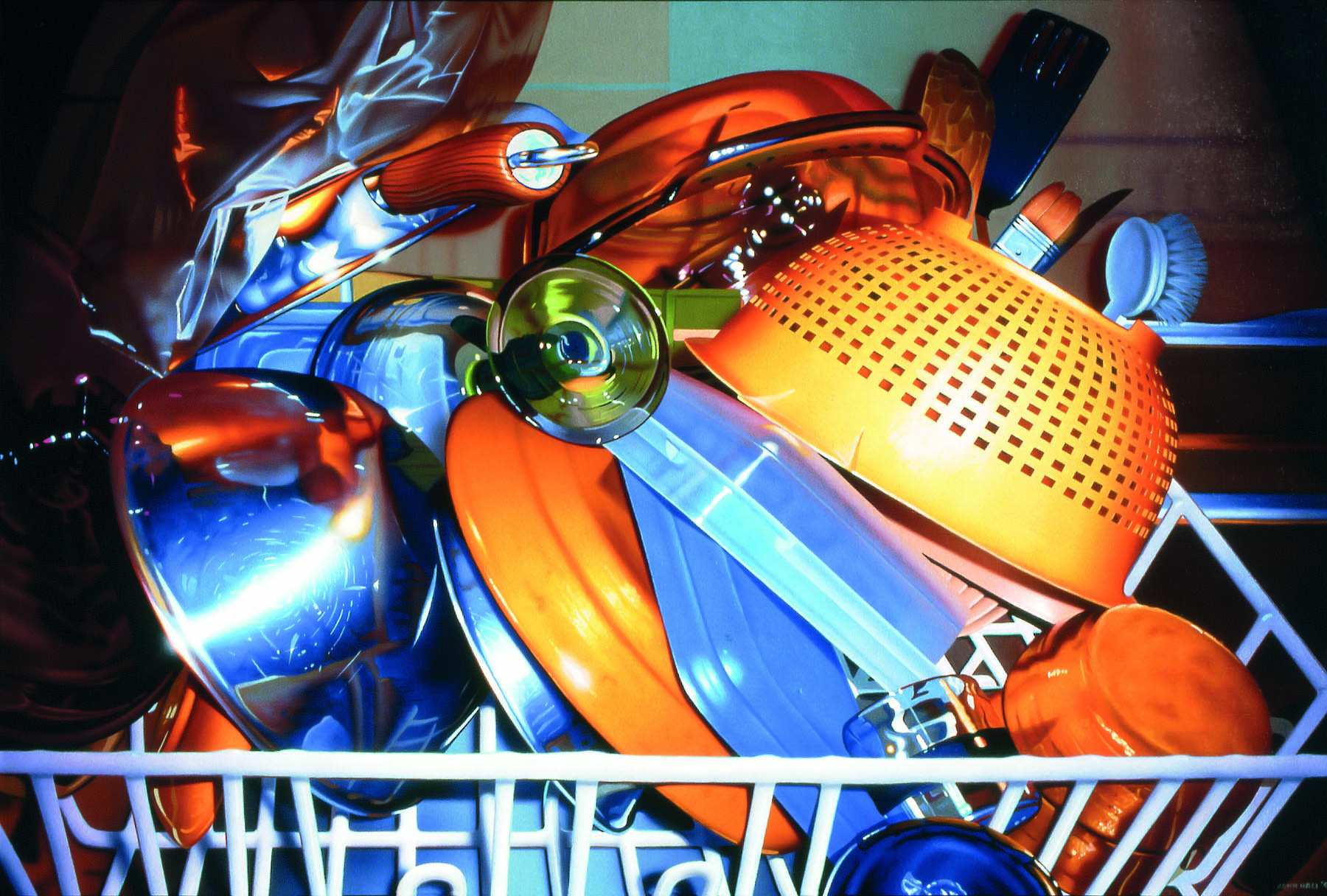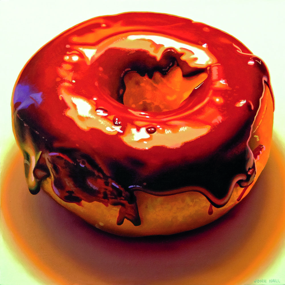 April 20, 2016 - Kelowna, BC: Visitors to a new exhibition at the Kelowna Art Gallery may have difficulty believing that the incredibly life-like paintings on view are not photographs. Many of the paintings by Kelowna-based artist John Hall feature ordinary objects painted in extraordinary detail - a doughnut with its chocolate glaze soft and dripping; a drying rack stacked with dishes sitting on a counter; strands of brightly coloured licorice and other assorted candies displayed on a reflective platter.