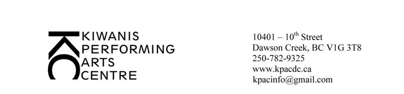 The Kiwanis Performing Arts Centre (KPAC) is operated by a not-for-profit
