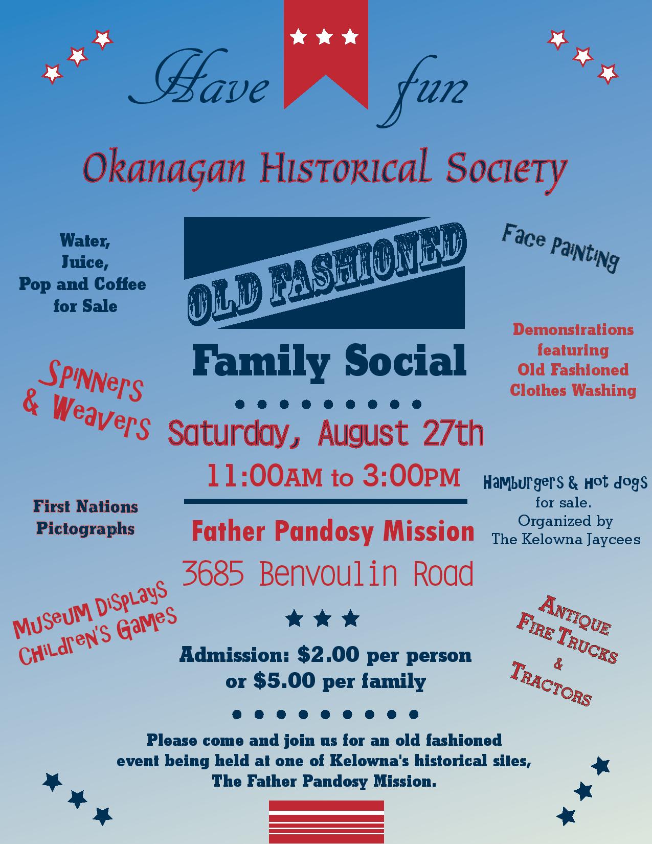 Fashioned Family Social at the Father Pandosy Mission Saturday, August 27th