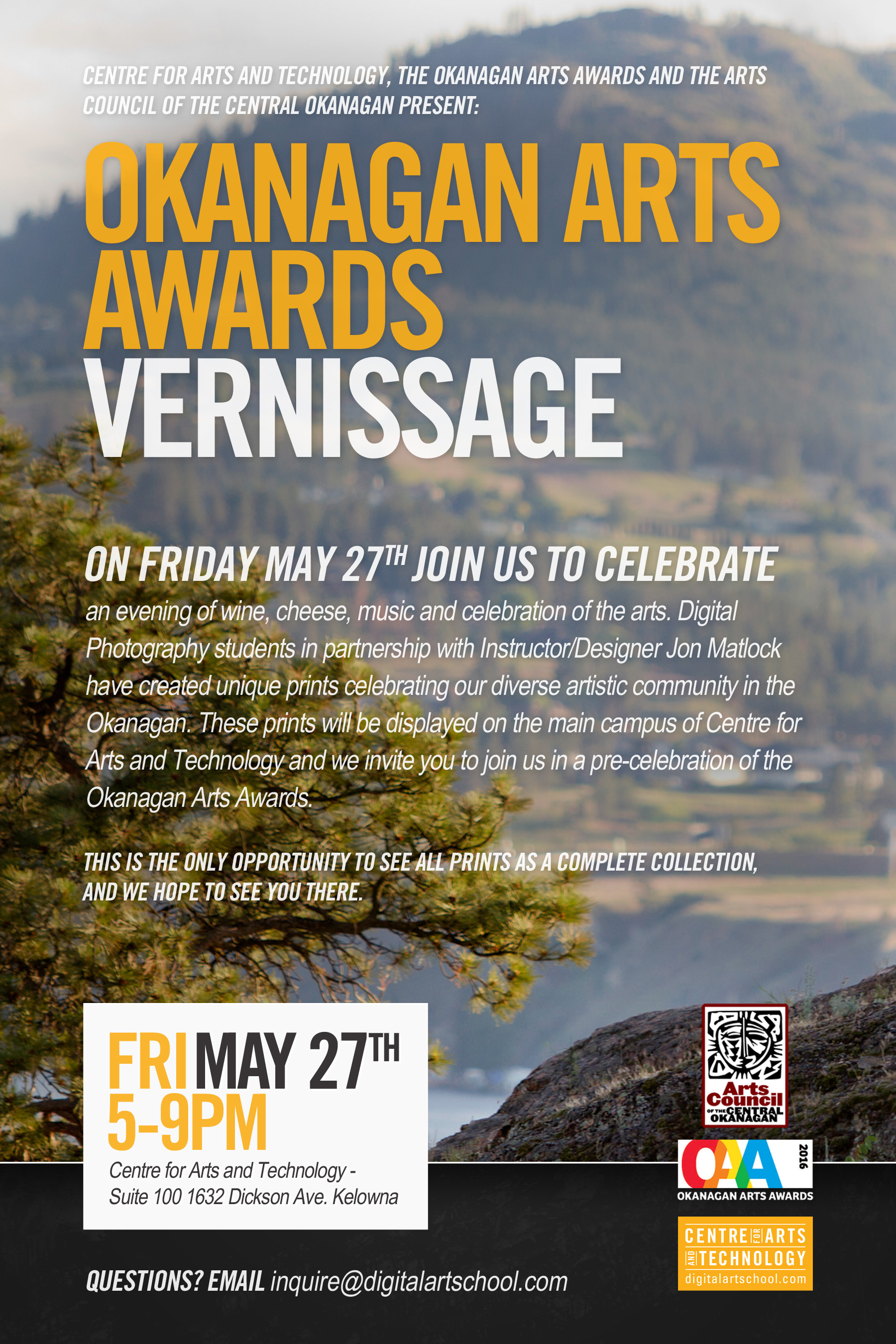 [BCMA] [media release] Preview Exhibition of Finalist Posters for the Okanagan Arts Awards created by Centre for Arts and Technology students May 27th