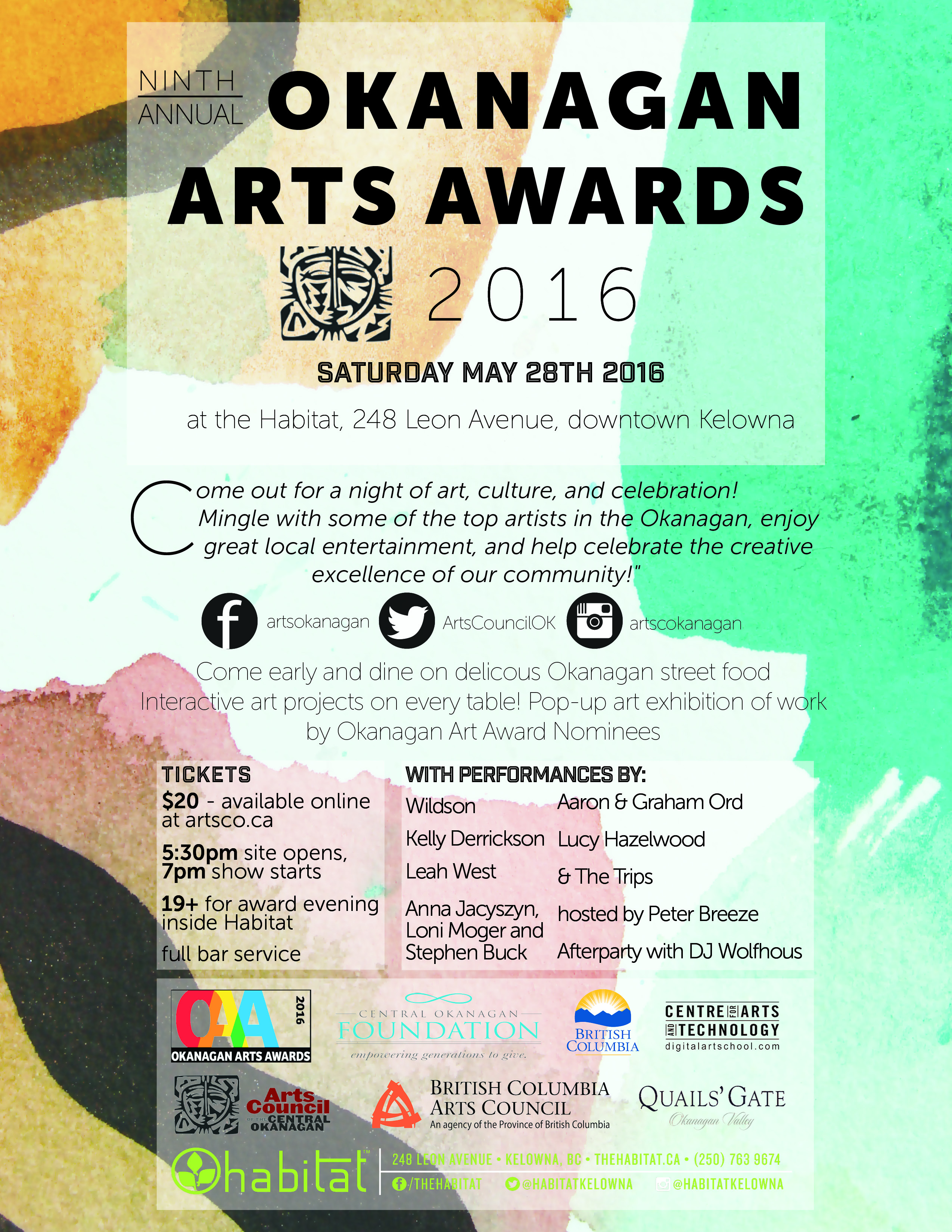 Join us on Saturday, May 28th for the 9th Annual Okanagan Arts Awards