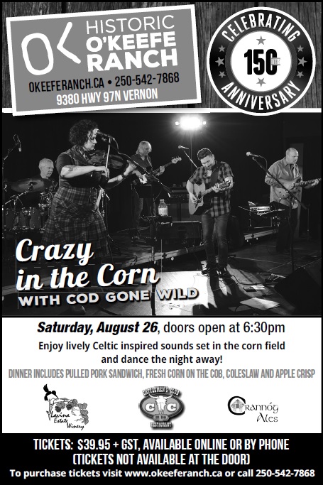 Saturday, August 26, doors open at 6:30 pm, Crazy in the Corn with Cod Gone