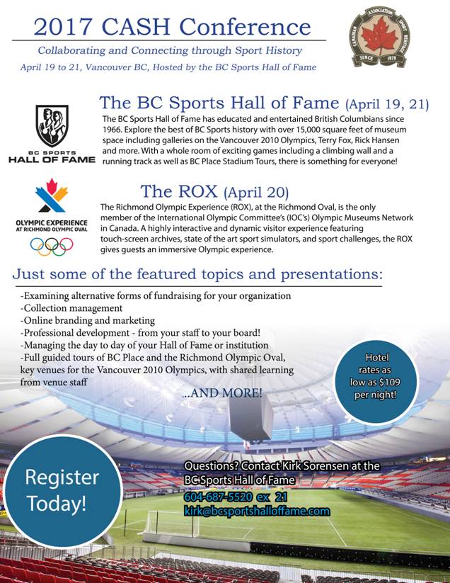 [BCMA] BC Sports Hall of Fame to host Canadian Association of Sport Heritage Conference - April 19-21, 2017