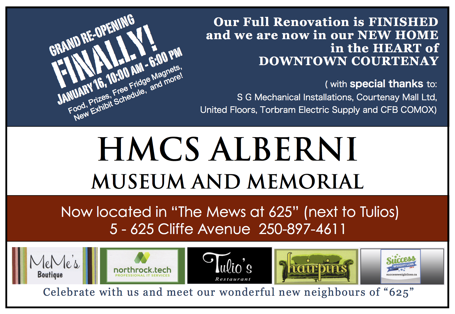 > *"The HMCS ALBERNI Museum and Memorial (HAMM) will be reopening its museum
