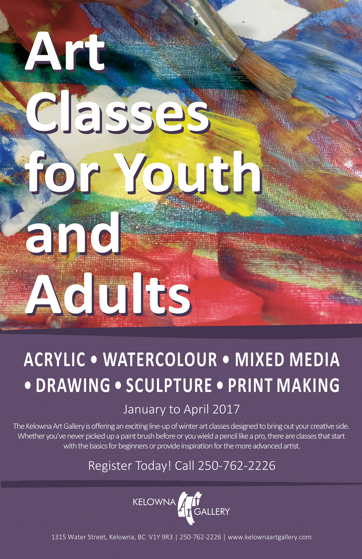 A full listing and description of available classes can be found on the Gallery's website at www.kelownaartgallery.com.
