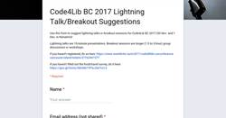 Code4Lib BC 2017 Lightning Talk/Breakout Suggestions<https://goo.gl/forms/bbArtR1Mhweuq5L33>
