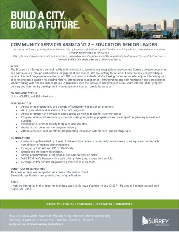 [BCMA] Community Services Assistant 2 - Education Senior Leader
