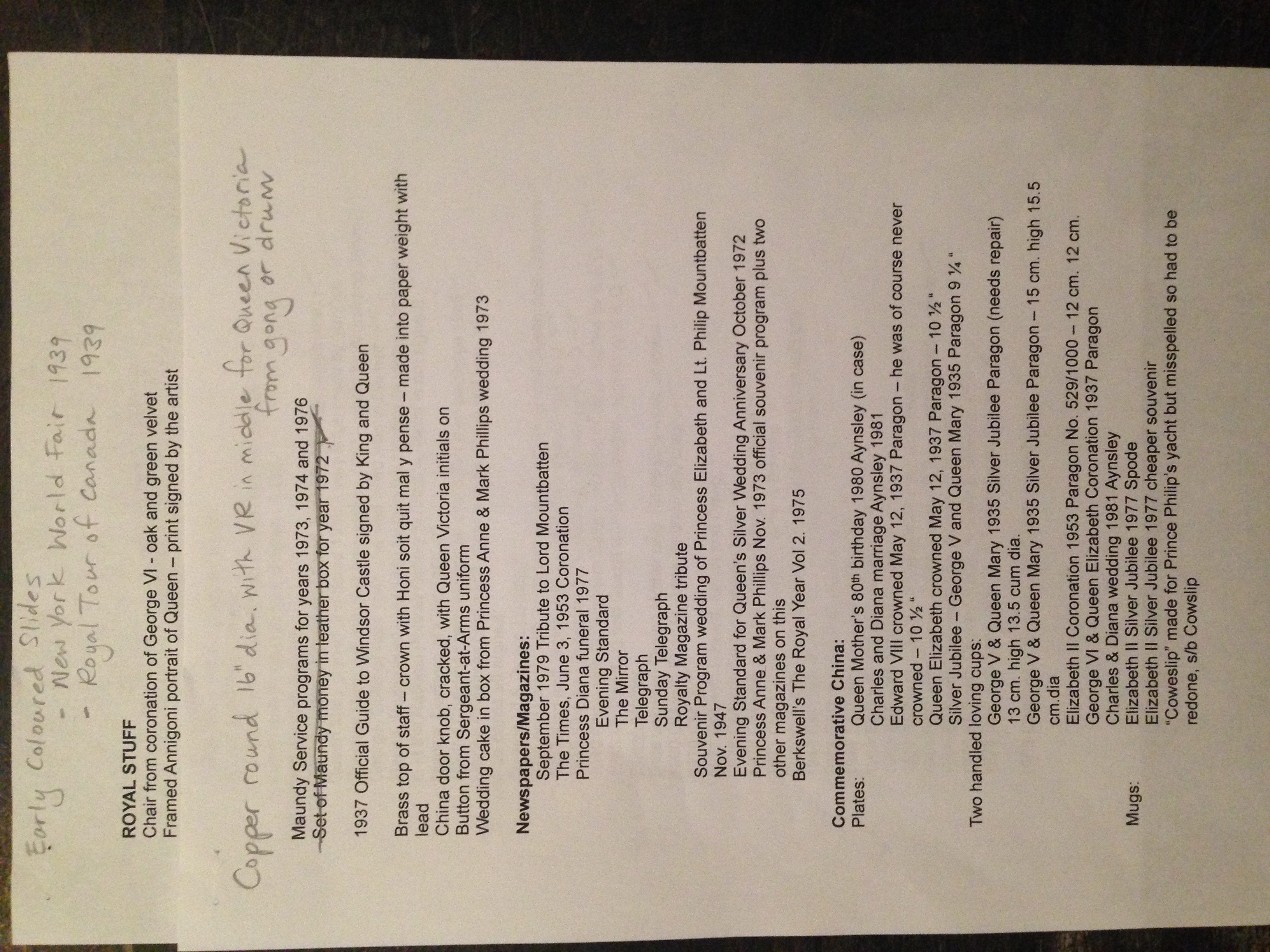 My name is Michelle Lee and I am working on behalf of a client of mine who has an interesting collection of Royal things. She is looking for a home for her collection, so I am reaching out in hope that there might be some interest from one of the museums to accept it as a donation, whether it is just certain pieces or as a whole. I am attaching the list of items. I can be contacted at