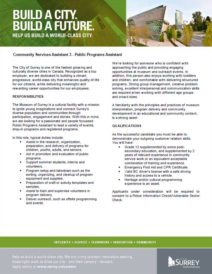 [BCMA] Community Services Assistant 3 - Public Programs Assistant