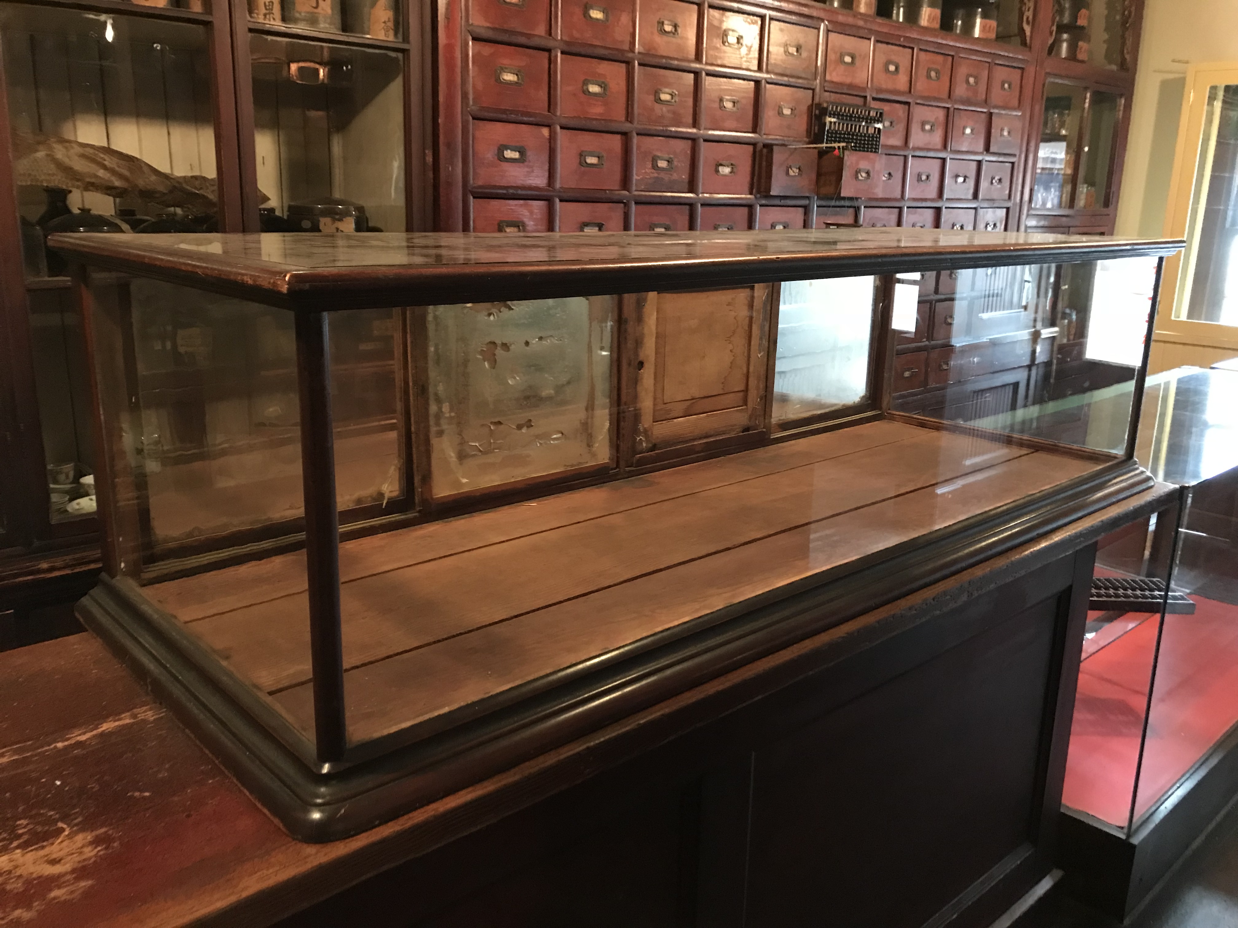 The Burnaby Village Museum is retiring one of its older table-top display cases and would love to see it go to another Museum. The case has a wooden frame and base with glass on sides and top with two access doors on the back.