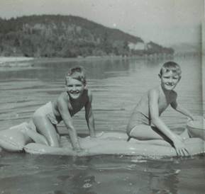 Caption: Vivian (left) and his brother Peter floating at Pierre's Point, near Salmon Arm
