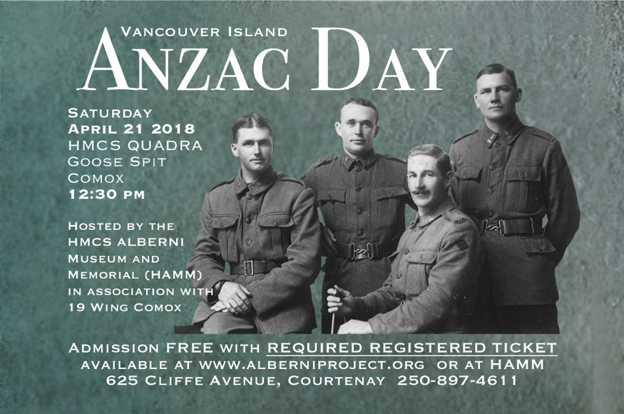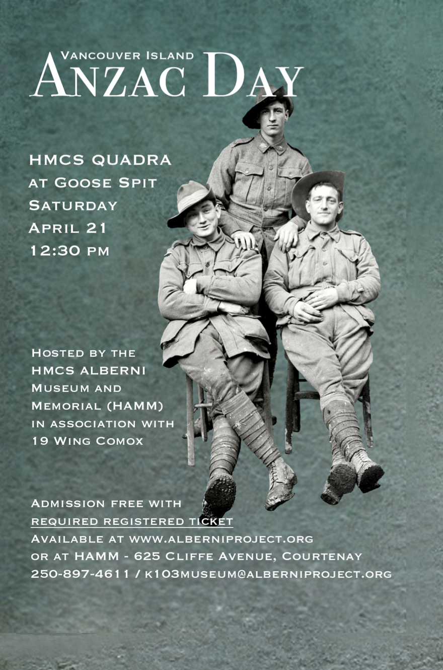 I need some assistance in spreading the word about this year's VANCOUVER ISLAND ANZAC DAY in Comox. Due to extreme cutbacks and loss of grants we aren't able to advertise this event as widely across Vancouver Island as we have in the past. So we are relying mostly on Friends of HAMM to spread the word via social media around Vancouver Island.