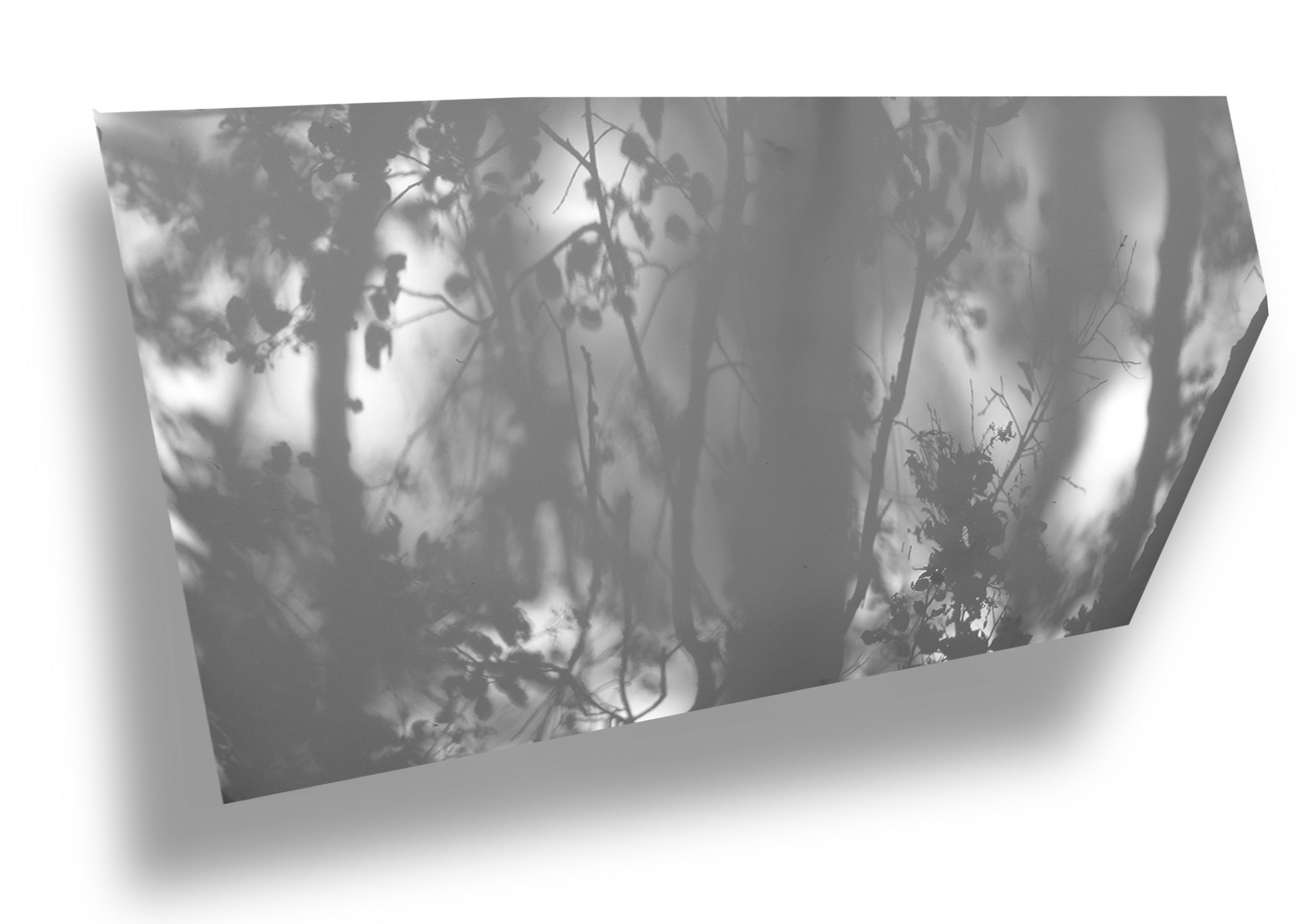 Derek Besant, The Dark Woods (Revisited) #2, 2018, thermal ink transfer on vinyl scrim veil, 56 x 98 in