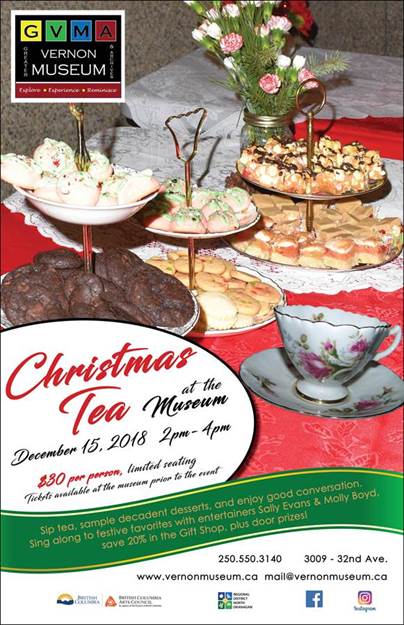 Caption: Last year's sold out Christmas Tea at the Vernon Museum. Tickets for the December 15th tea are on sale now. Get yours early to avoid disappointment!