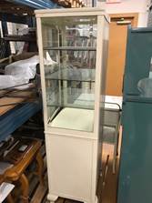 The Burnaby Village Museum is deaccessioning a medical cabinet. It is missing one castor but is otherwise in good condition.