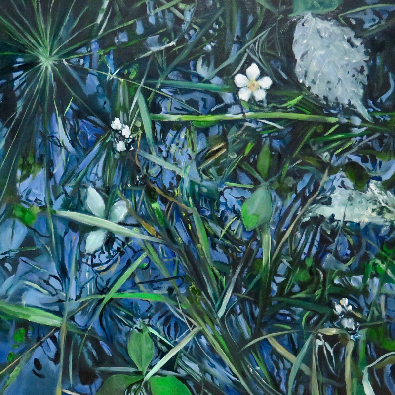 Much of her art is focused on capturing reflection and movement; she paints