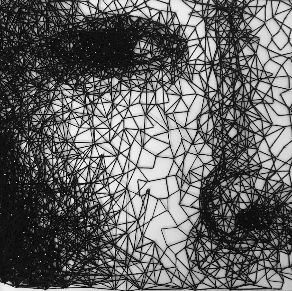 created from foam board, nails and black yarn.