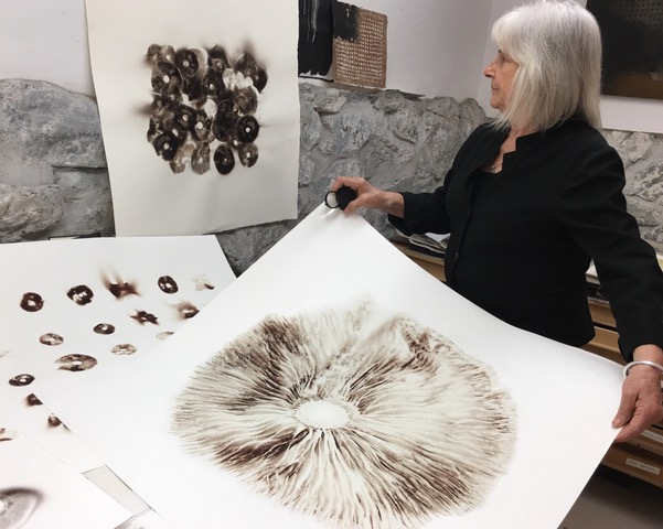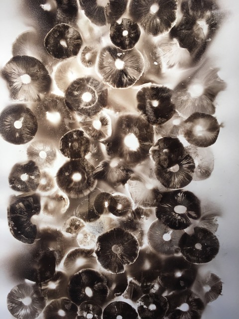 This artshow deepens an exploration of mushroom spore printing she started