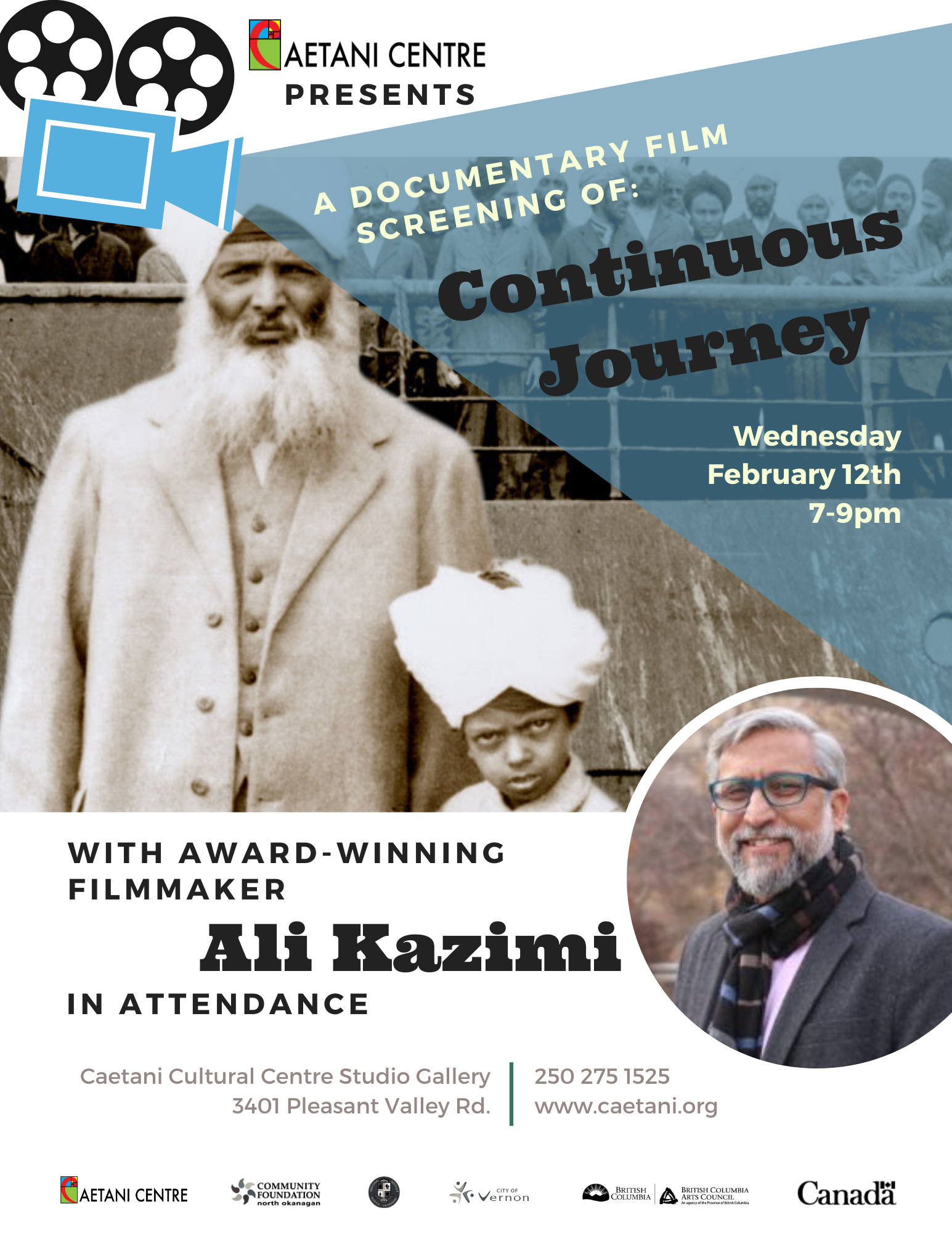 [BCMA] [media release - Caetani Cultural Centre] Documentary Film Screening: Continuous Journey: by Governor General-award winning filmmaker & Caetani Centre Artist-in-Residence Ali Kazimi