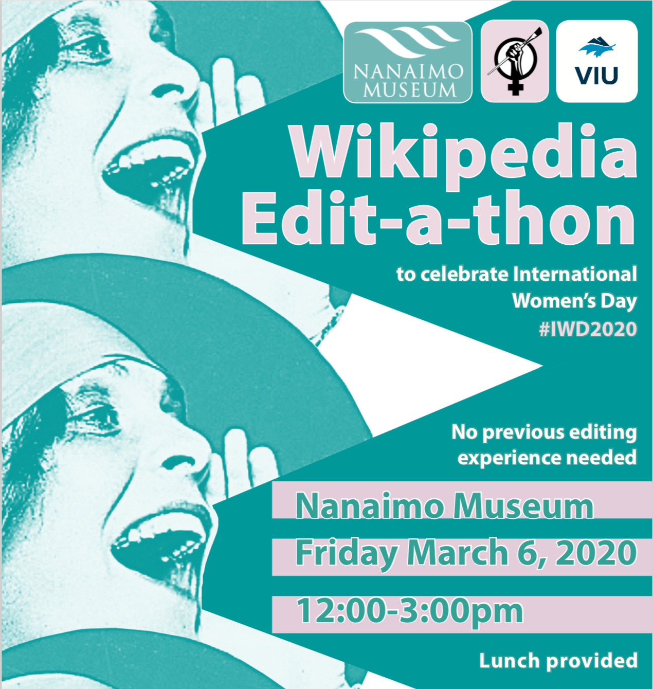The Nanaimo Museum, Vancouver Island University Library, CIEL & Faculty of Education are hosting a Wikipedia Edit-a-thon to celebrate International Women’s Day. The event takes place on Friday, March 6, 2020 from 12:00pm-3:00pm at the Nanaimo Museum. Lunch is provided. For more information or to register, please visit: libguides.viu.ca/editathon.
