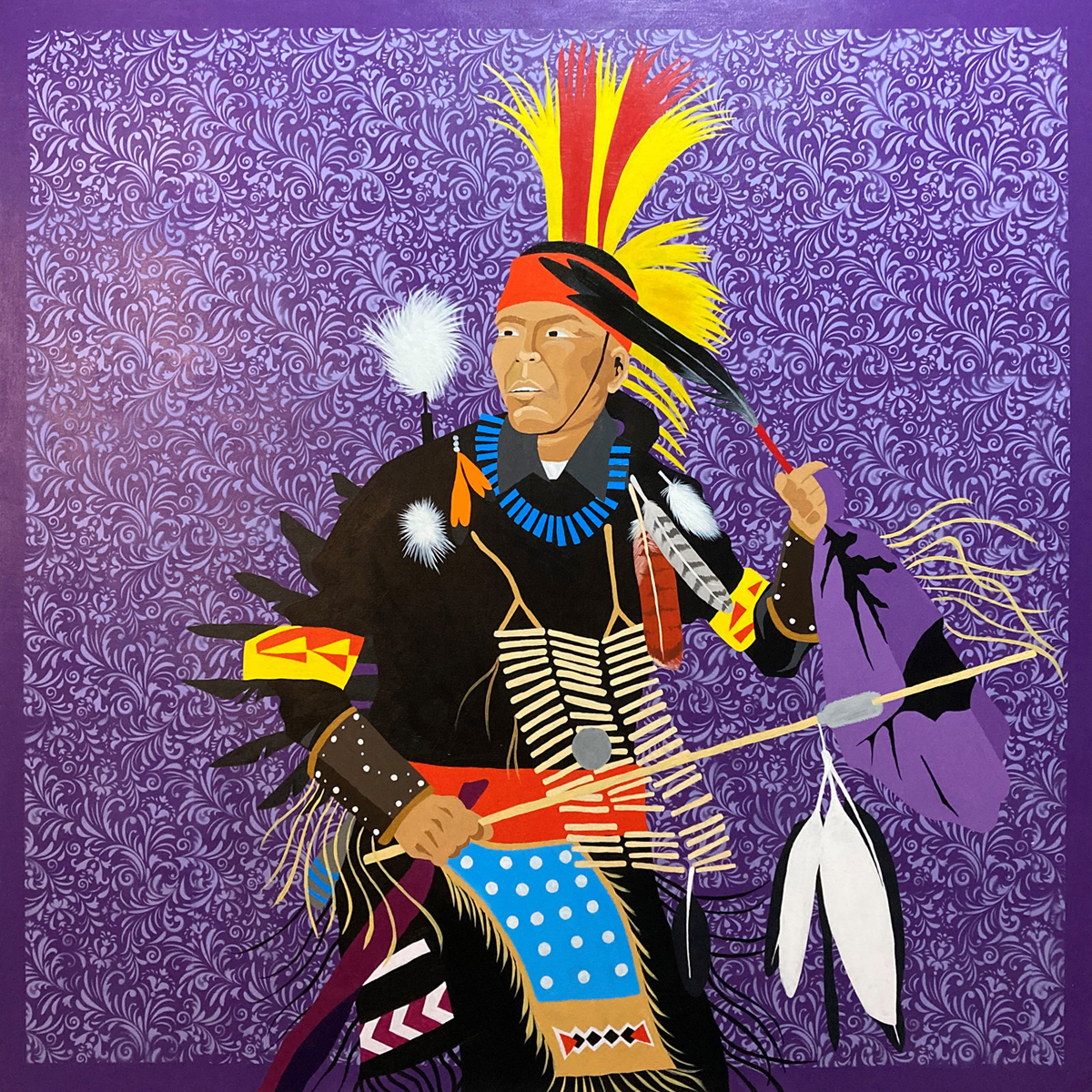 Sheldon Pierre Louis, puti kʷala – we are still here, 2020, acrylic on canvas, 48 x 48 inches. Photo: Courtesy of the Artist