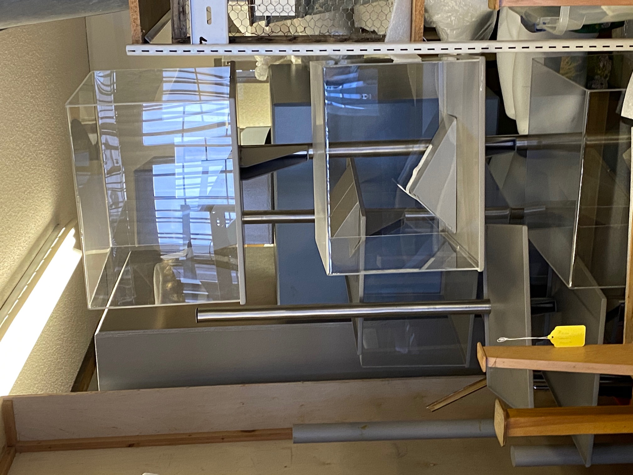 - 2 - 3 tiered display cases complete with plexi covers. Base is powder coated metal.
