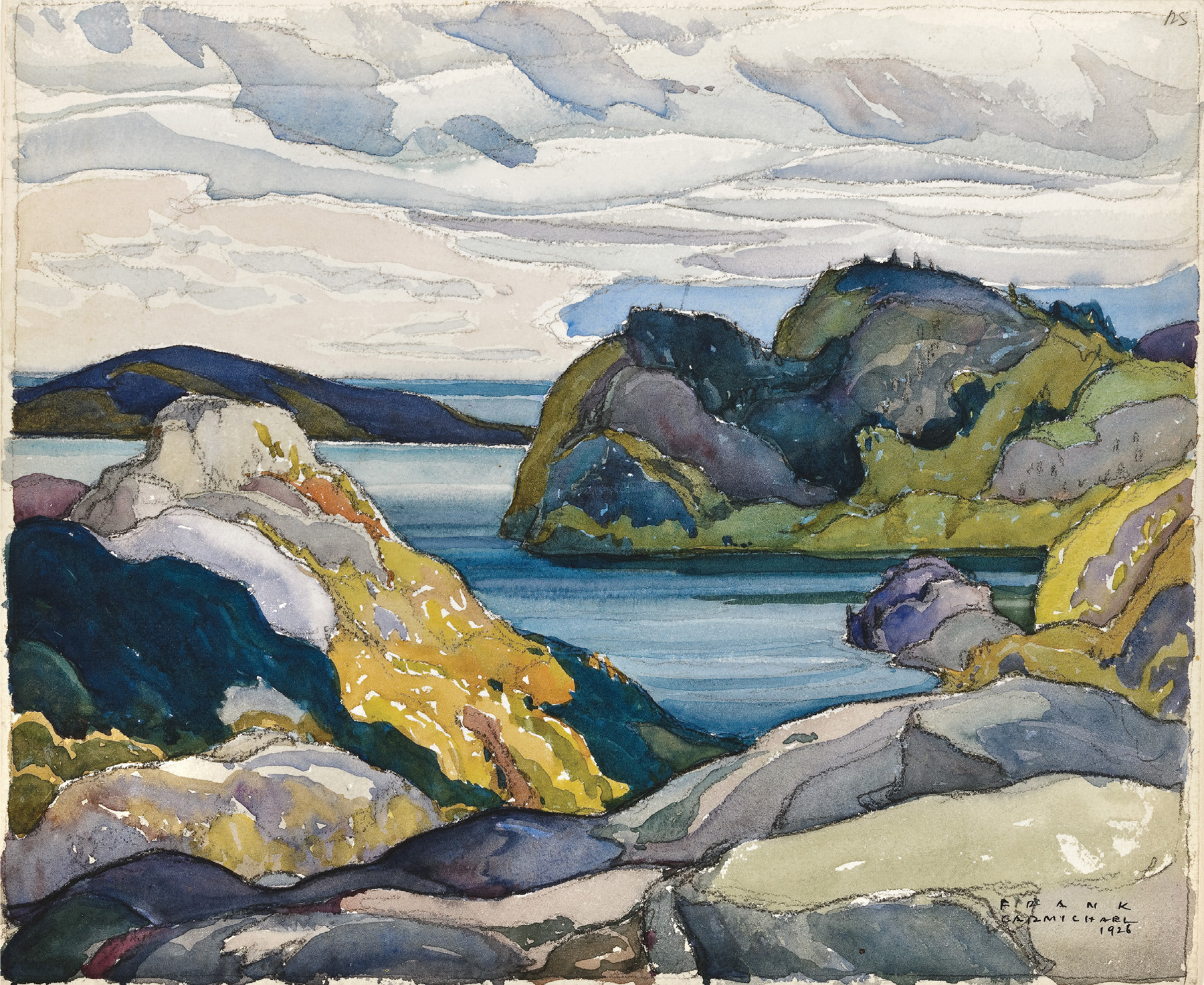 Franklin Carmichael, Lake Superior, 1926, watercolour on paper, 28.5 x 34.2 cm. Gift of Mrs. R.G. Mastin. McMichael Canadian Art Collection.