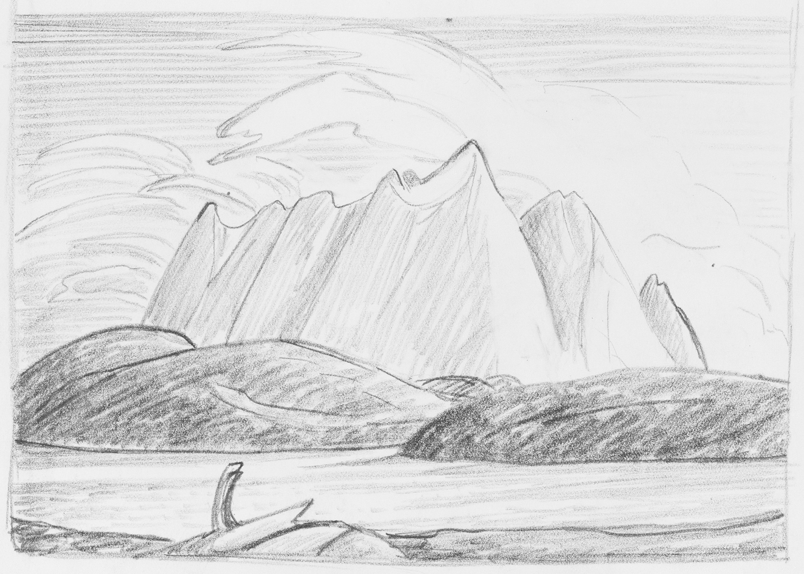 Lawren S. Harris, Untitled (Mountain Sketch), graphite on paper, 20.5 x 25.4 cm. Gift of Mrs. James H. Knox. McMichael Canadian Art Collection. © Family of Lawren S. Harris.